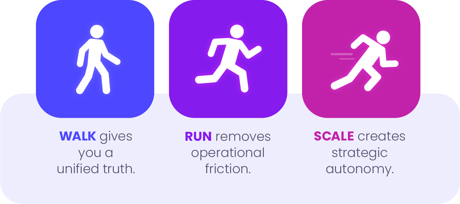 The Walk phase is designed to eliminate that tax by creating a unified, connected intelligence layer across the business.